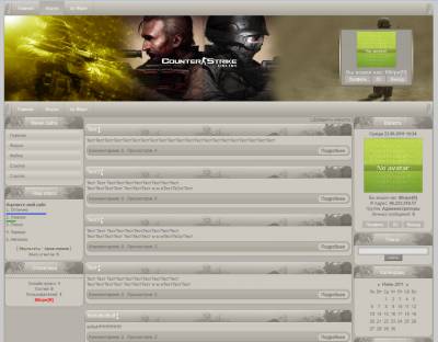 Приятный шаблон в серых тонах шаблон очень простой этим он и привлекает. В шапке находится зеленая картинка на тему cs и красивый мини-профиль.